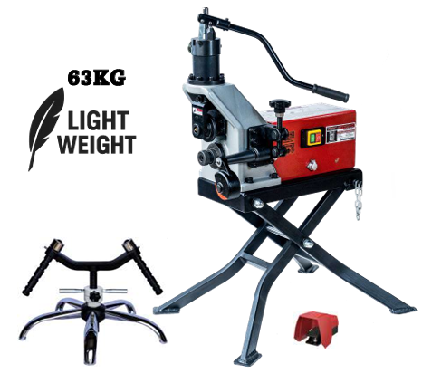 MRG-8V1 Roll-Grover Powered by 800W induction motor, hydraulic pump and convenient depth adjusting function, it is designed to form roll groove on standard wall pipes 1”-8” SCH10 to SCH40. Convenient drive shaft design for easy replacement. A high performance gear reduction motor contributes to compact size and low noise. The machine comes with a foldable stand and the unit can be easily moved. Induction motor ensures stable and quiet operation.